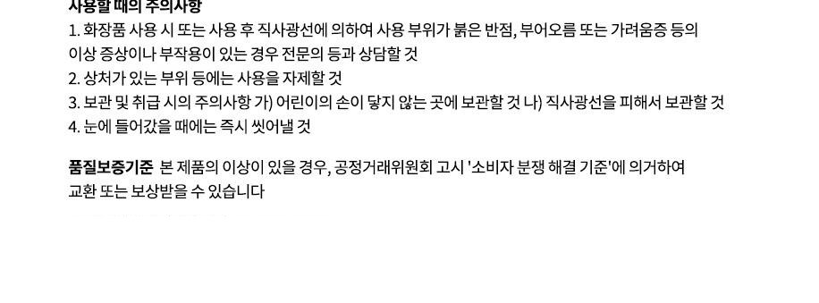 | 화장품제조업자, 화장품책임판매업자 및 맞춤형화장품판매업자 | 컨텐츠 참조 | 제조국 | 컨텐츠 참조 |