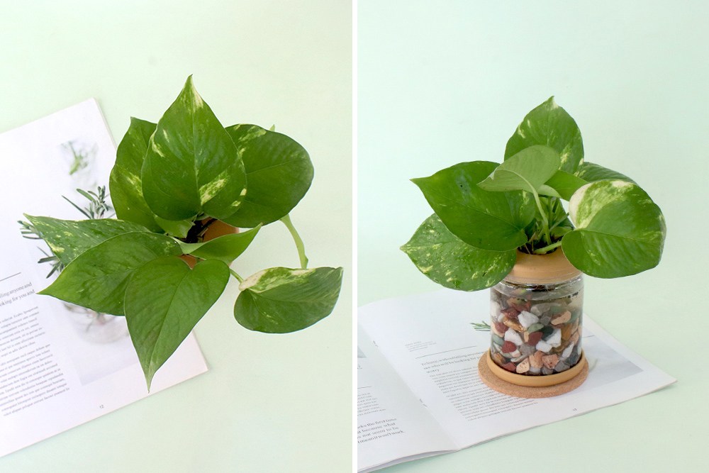 스킨답서스는 대표적인 실내 공기정화식물로 그늘에서도 잘 자라는 식물입니다. 특히 수경재배로도 잘 자라는 식물 중에 하나입니다.