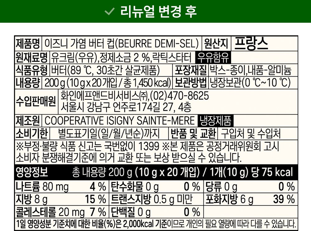 · 드시기 10분 전 냉장고에서 꺼내 두면 부드러운 질감과 함께 버터 본연의 풍부한 향을 온전히 느낄 수 있습니다.