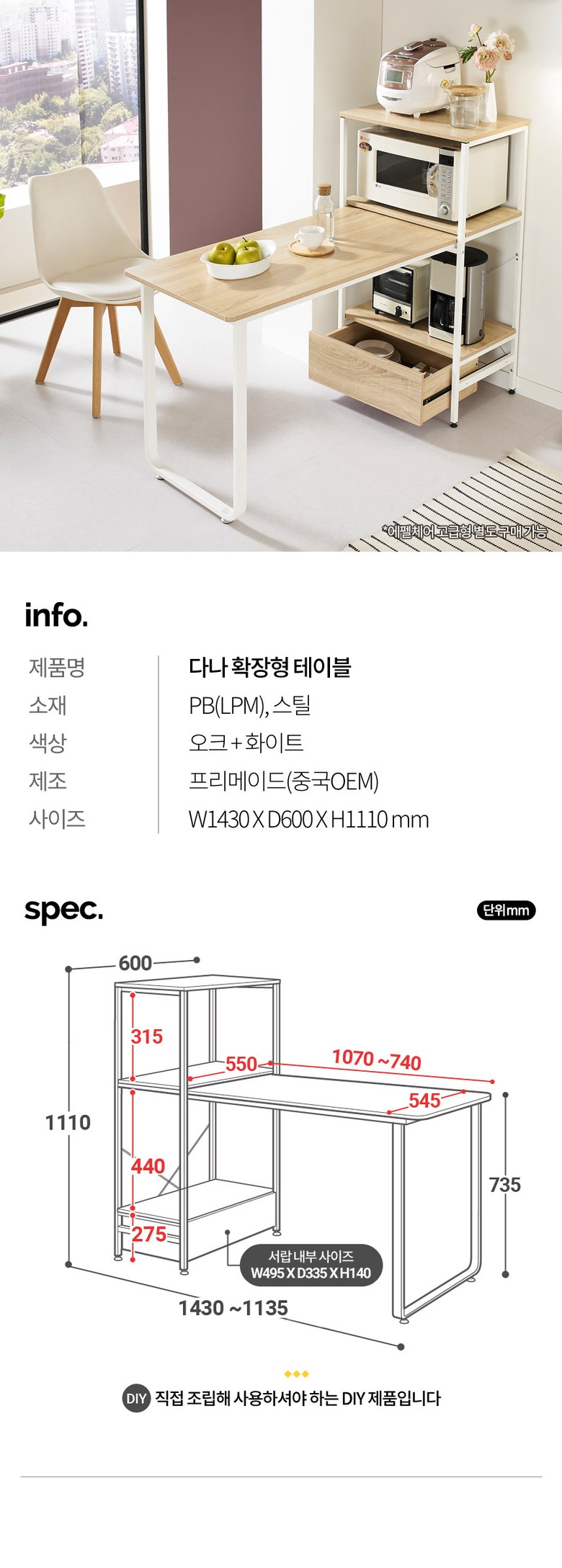 | 색상 | 오크+화이트 | 구성품 | 상세페이지 참조 |