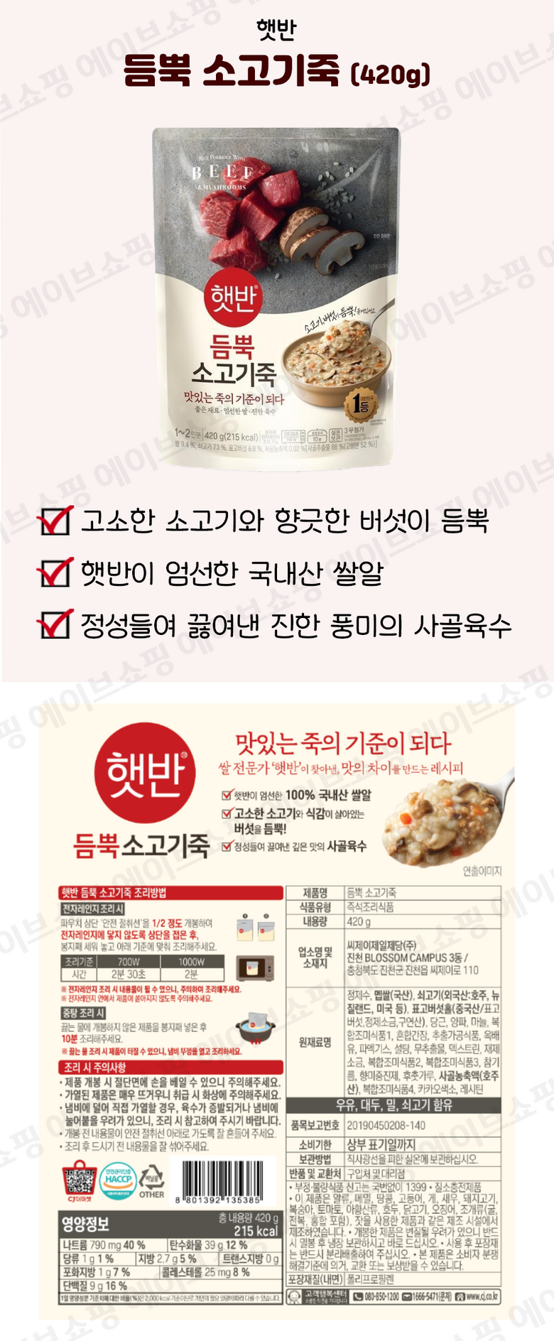 | 제조연월일, 소비기한 또는 품질유지기한 | 상품 상세페이지 참조 | 세부 품목군별 표시사항 | 상품 상세페이지 참조 |