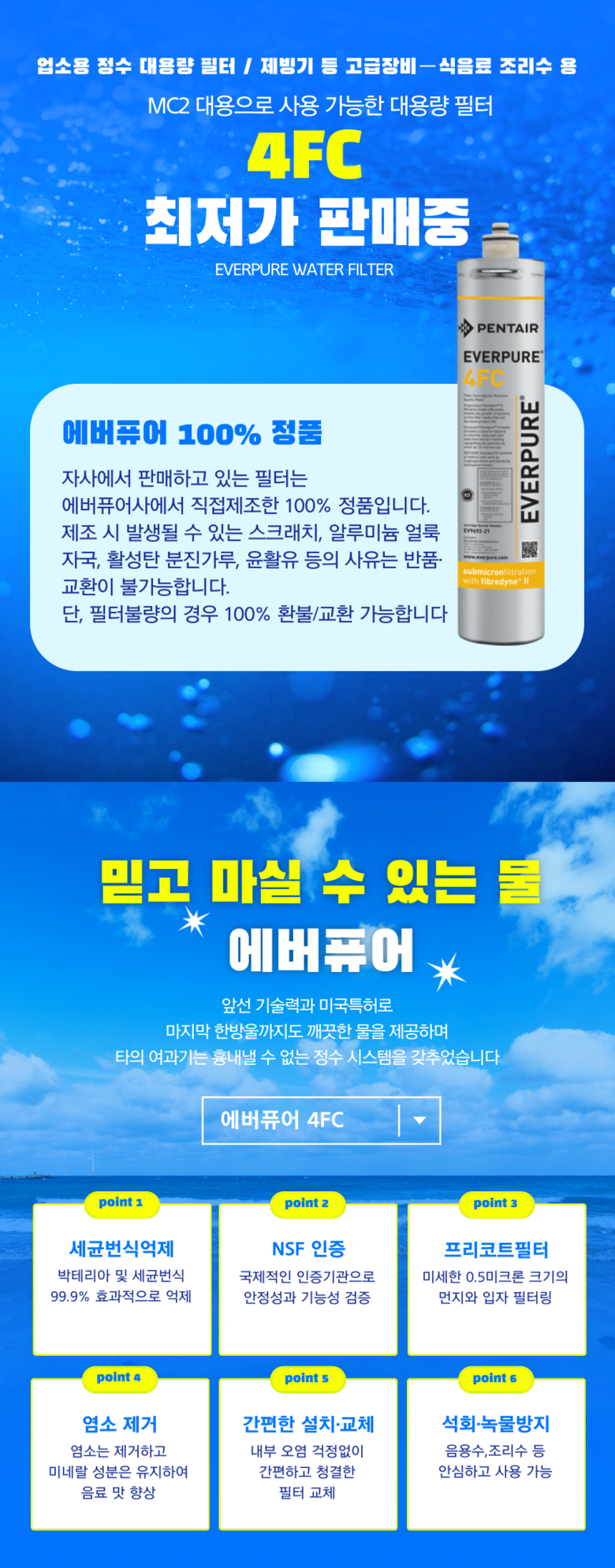 | 품명 및 모델명 | 에버퓨어 4FC | 인증/허가 사항 | NSF인증 |