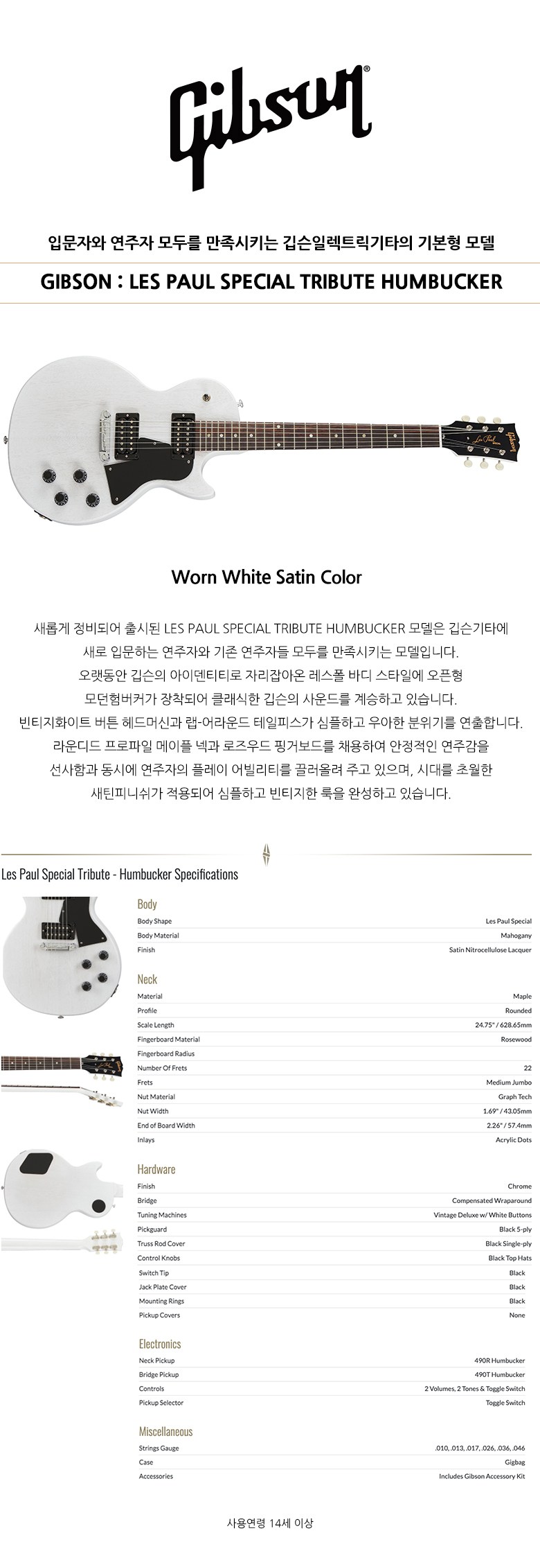 | 품명 및 모델명 | 깁슨 Les Paul Special Tribute Humbucker 일렉 기타 | 크기 | 1140*430*175mm |