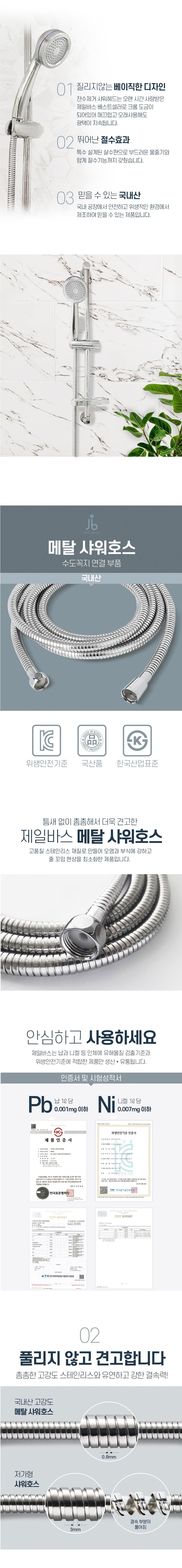 | 품명 및 모델명 | 제일바스 잔수제거 샤워헤드 줄세트 2.5m | 인증/허가 사항 | 해당없음 |