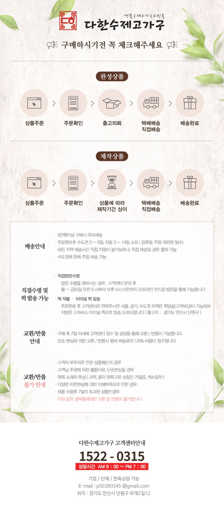 - ㆍ주문/제작 상품의 경우, 상품의 제작이 이미 진행된 경우