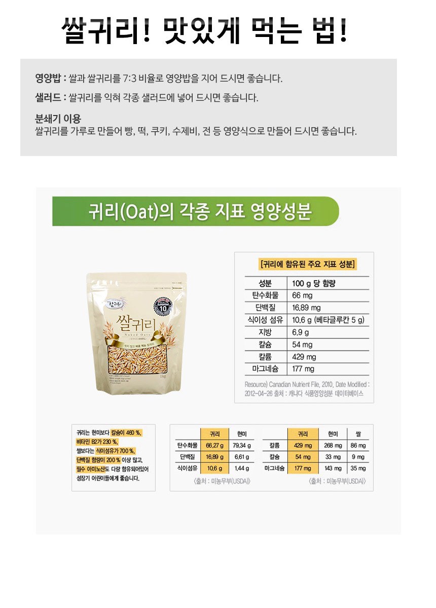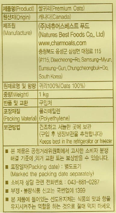 | 품목 또는 명칭 | 2017년 쌀귀리 | 포장단위별 내용물의 용량(중량),수량,크기 | 1kg x 4개,1개 |