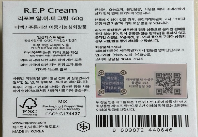 | 화장품제조업자, 화장품책임판매업자 및 맞춤형화장품판매업자 | 상품 상세페이지 참조 | 제조국 | 상품 상세페이지 참조 |