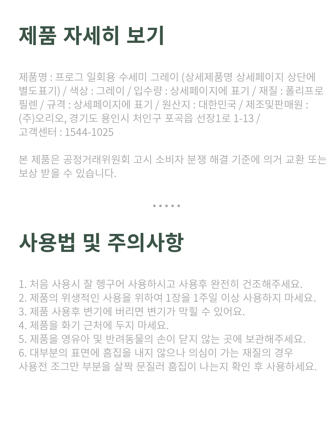다만, 판매자의 제시사항이 관계법령보다 소비자에게 유리한 경우에는 판매자 제시사항이 적용됩니다.