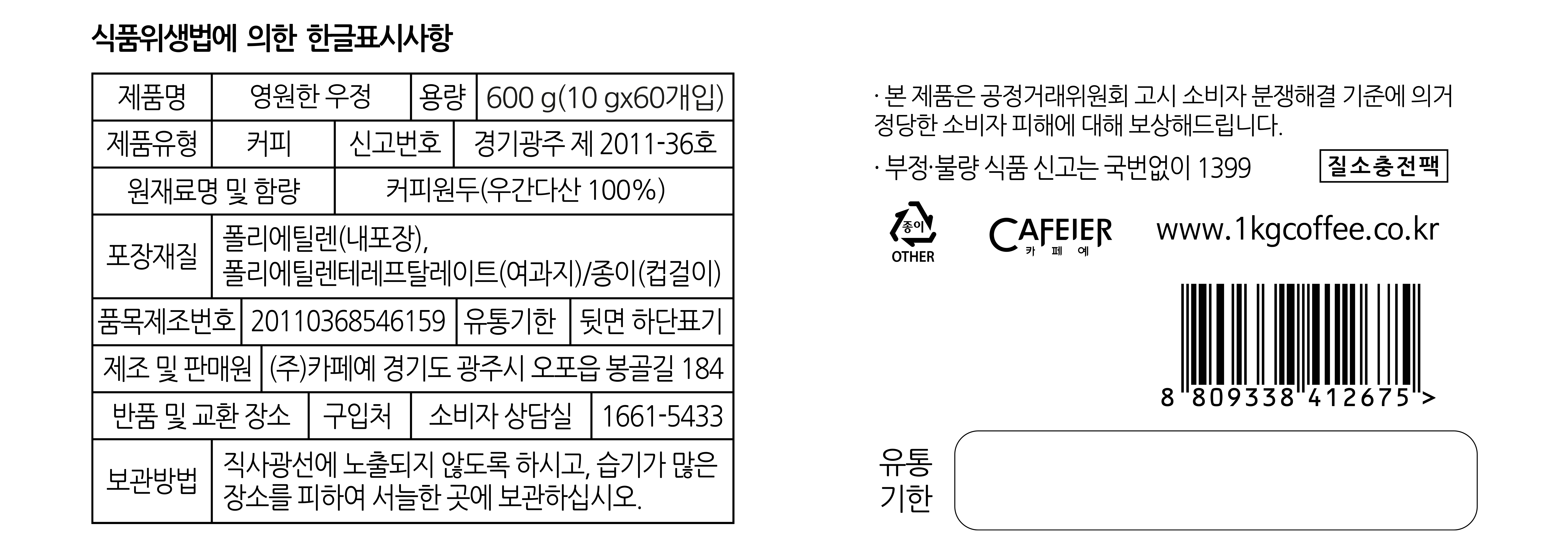 | 생산자 및 소재지 | 컨텐츠 참조 | 제조연월일, 소비기한 또는 품질유지기한 | 소비기한(또는 유통기한) : 2026년 09월 14일 이거나 그 이후인 상품<br />제조년월일 : 2025년 09월 15일 이후인 제조상품 |