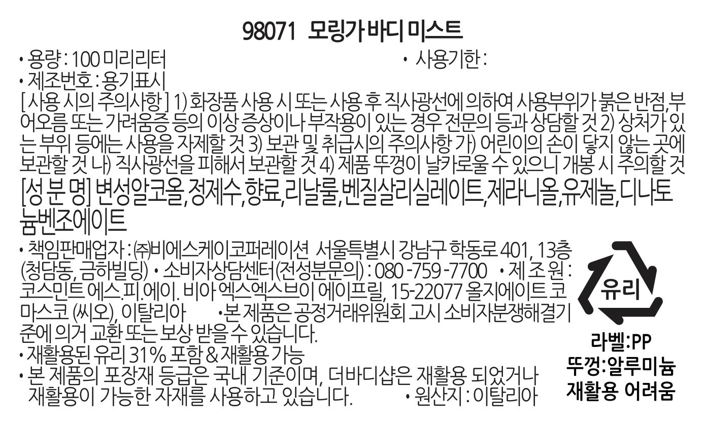 - 향기 유형: 바디 스프레이