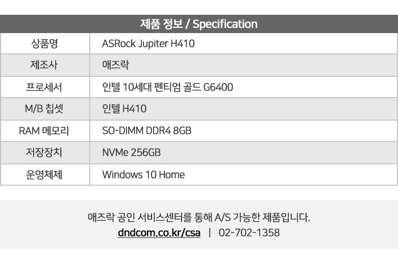 | 품명 및 모델명 | 에즈락 미니PC / ASRock Jupiter H410 | KC 인증정보 | 본품 : R-R-ASR-JUPITERH410 , 전원케이블 : SU04014-2006G, 전원어댑터 : HU10104-13347A |