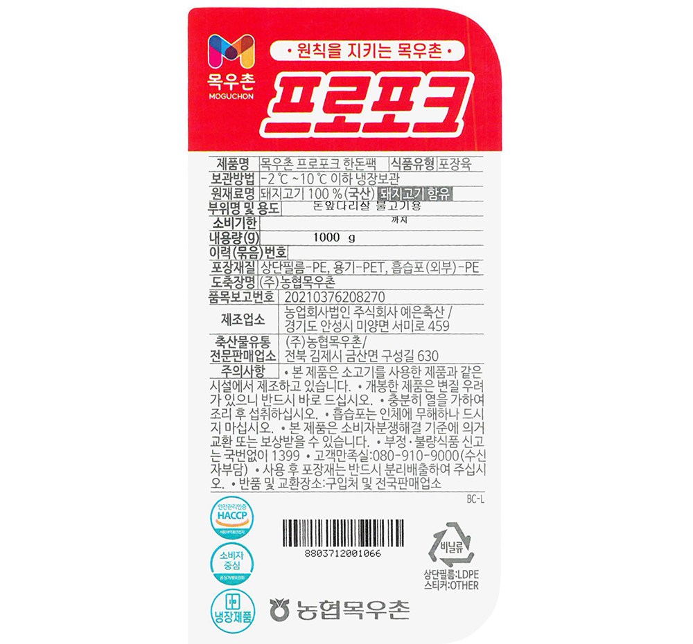 신선도를 유지하기 위해 MAP(Modified Atmospheres Packaging) 기법으로 포장했어요. 용기 내에 산소와 이산화탄소를 채워 고기의 맛과 품질을 유지합니다.