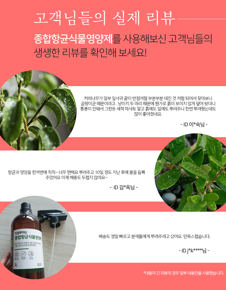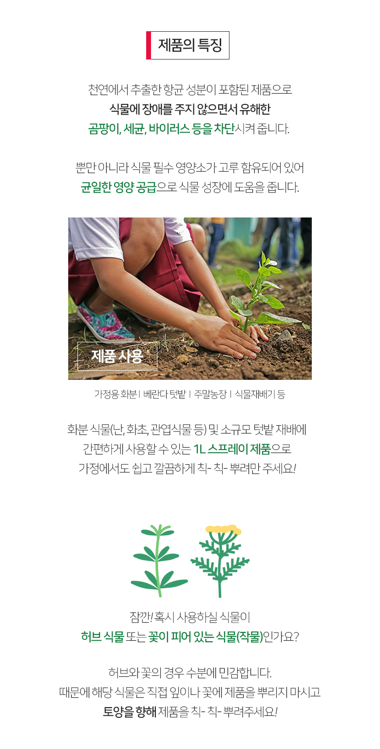 | 품명 및 모델명 | 직접뿌리는 종합항균식물영양제 | 인증/허가 사항 | 경북 성주 080-가-10804호 |