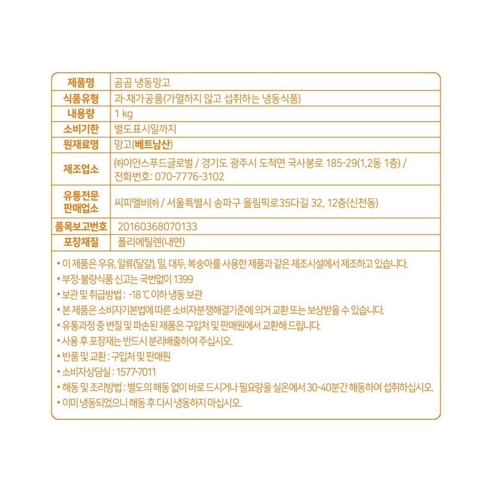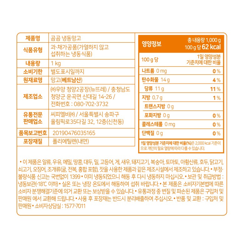 | 포장단위별 내용물의 용량(중량), 수량 | 1kg, 5개 | 원재료명 및 함량 | 컨텐츠 참조 |