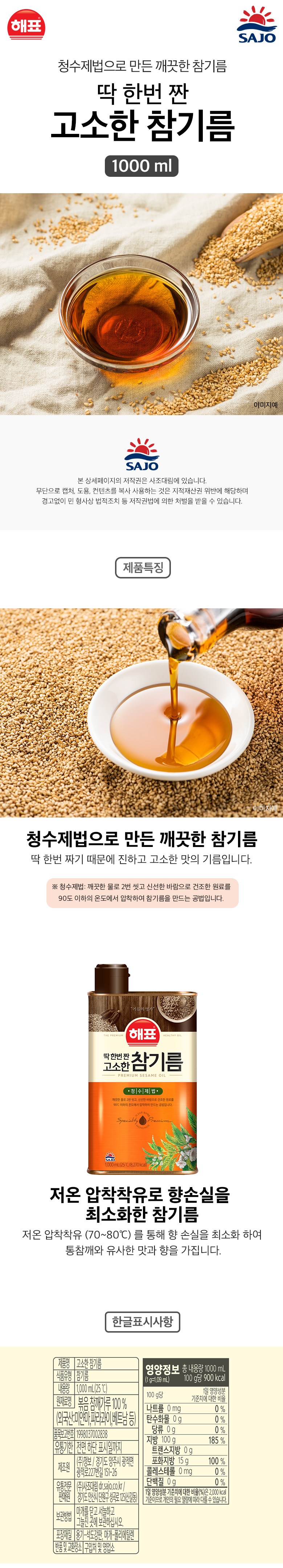 | 제품명 | 고소한 참기름 | 식품의 유형 | 참기름 |