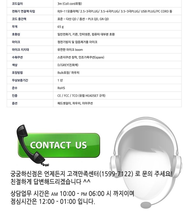 | 소비자상담 관련 전화번호 | 상품 상세페이지 참조 | ||