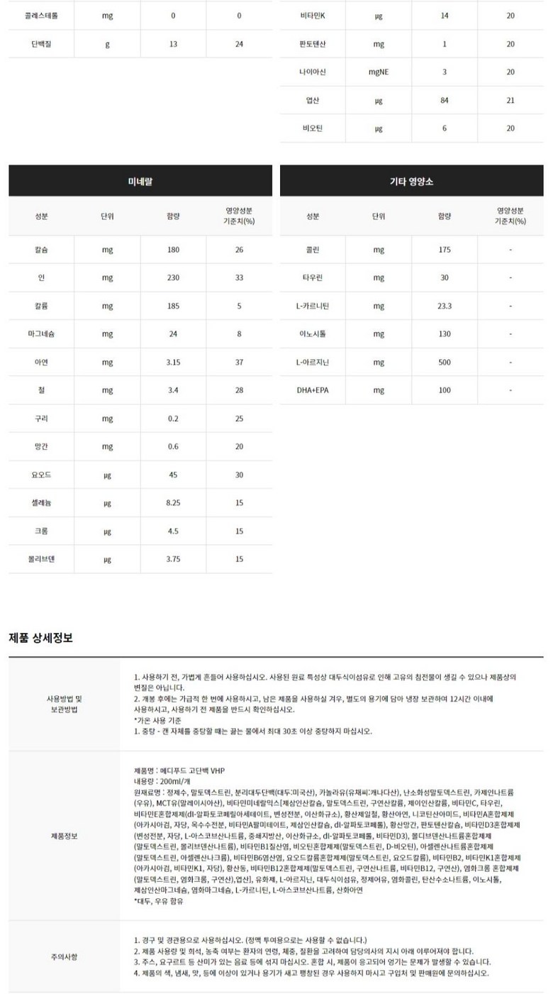 | 제품명 | 메디푸드 고단백 VHP | 식품의 유형 | 특수의료용도등식품(환자용식품) |