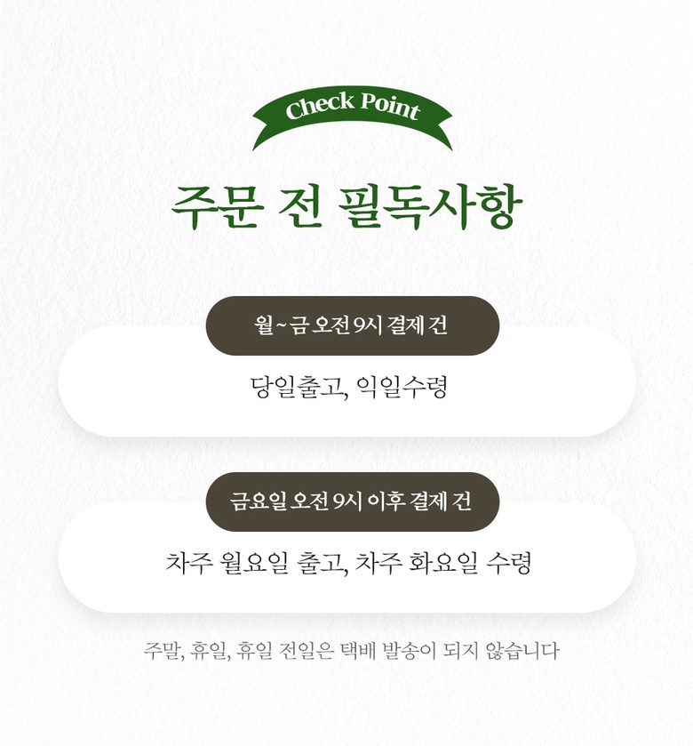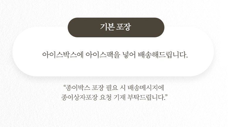 | 배송방법 | 신선/냉장/냉동 | 배송비 | 무료배송 · 도서산간 추가 배송비 - 제주 지역: 3,000원 - 도서산간 지역: 3,000원 |