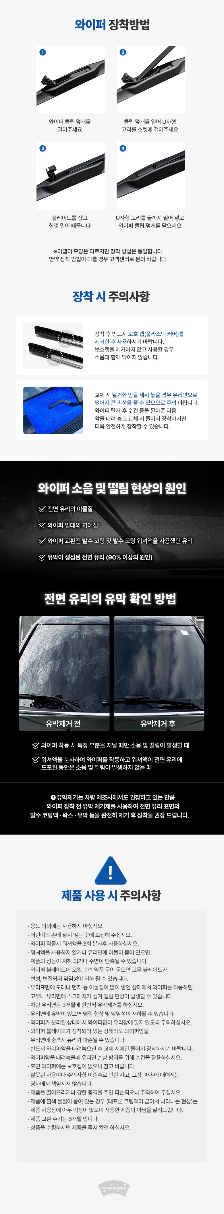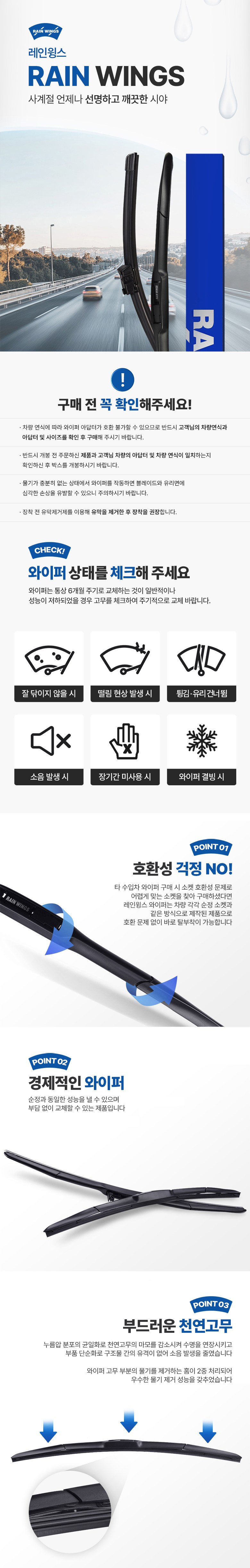| 품명 및 모델명 | 레인윙스 하이브리드 RV & SUV 차량 전면+후면 와이퍼 세트 | 동일모델 출시년월 | 업체미제공 |