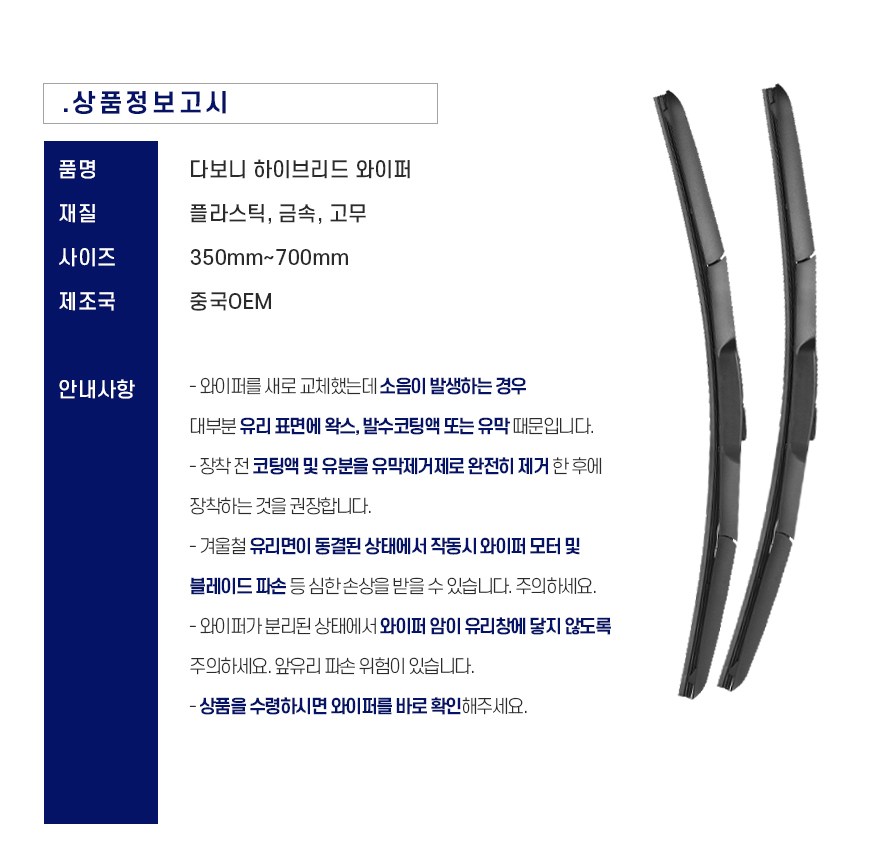 | 품명 및 모델명 | 다보니 하이브리드 와이퍼 | 동일모델 출시년월 | 2020년10월 |