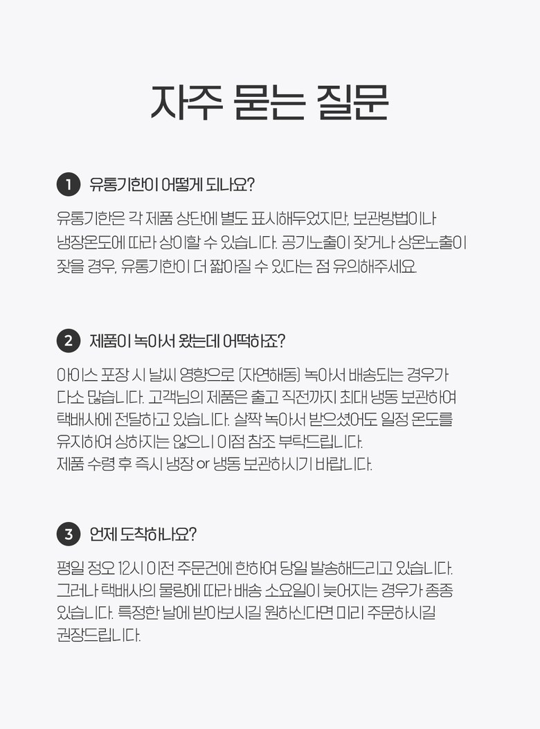 | 제조연월일, 소비기한 또는 품질유지기한 | 상품 상세페이지 참조 | 세부 품목군별 표시사항 | 상품 상세페이지 참조 |