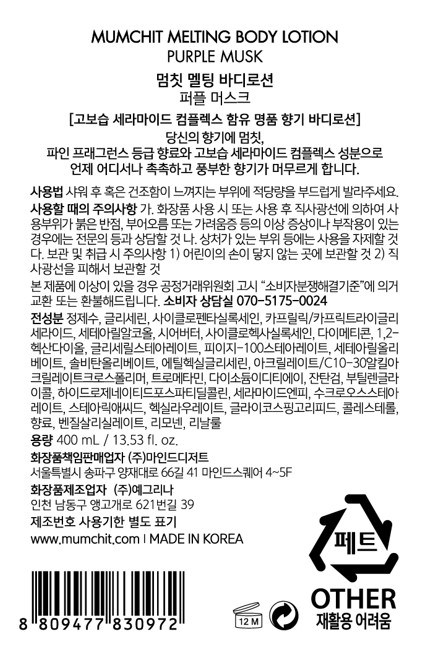| 화장품제조업자, 화장품책임판매업자 및 맞춤형화장품판매업자 | 컨텐츠 참조 | 제조국 | 대한민국 |