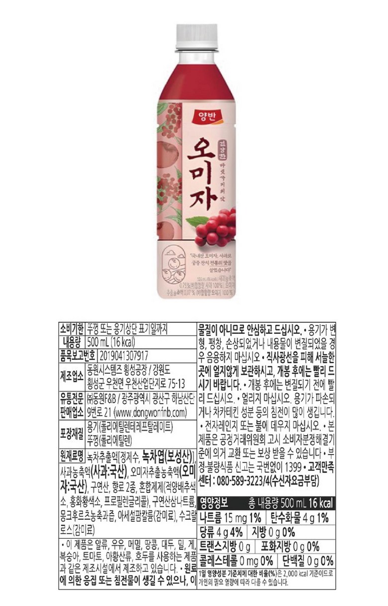 | 제품명 | 상품 상세페이지 참조 | 식품의 유형 | 상품 상세페이지 참조 |
