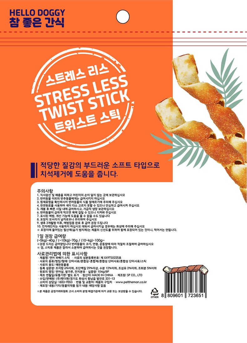 | 품명 및 모델명 | 참좋은간식 트위스트 스틱 연어맛, 8p, 3개입 | 인증사항 | 해당없음 |