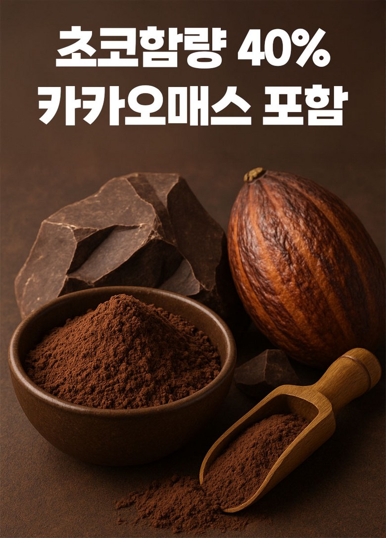 | 포장단위별 내용물의 용량(중량), 수량 | 상품 상세페이지 참조 | 원재료명 및 함량 | 초코함량 (40%) |