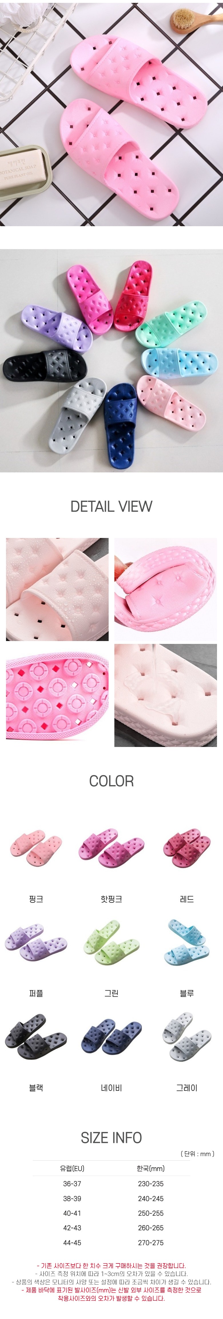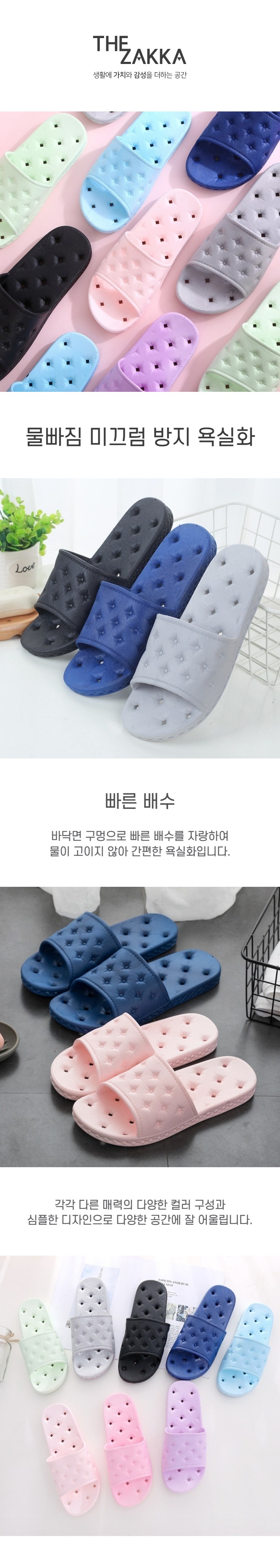 | 품명 및 모델명 | [더자카] 물빠짐 미끄럼 방지 욕실화 | 인증/허가 사항 | 해당없음 |