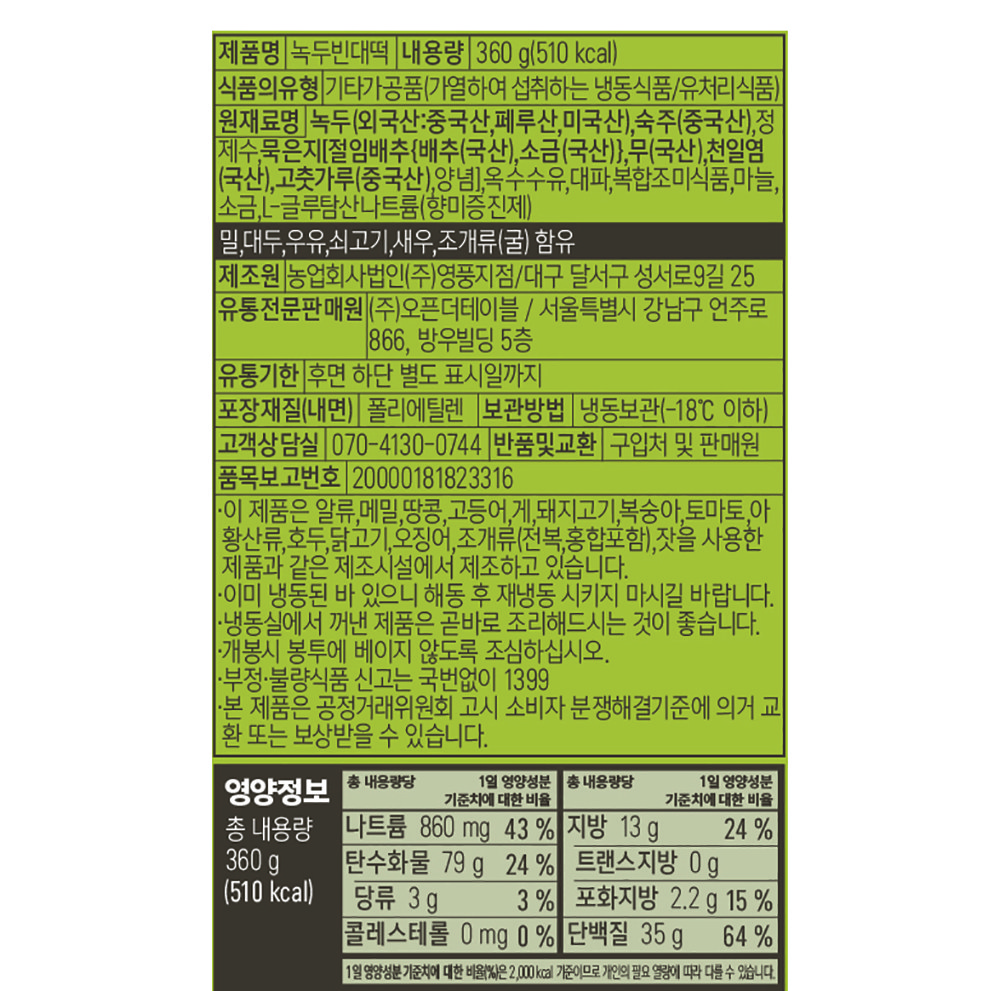 | 제품명 | 녹두빈대떡 | 식품의 유형 | 컨텐츠참조 |