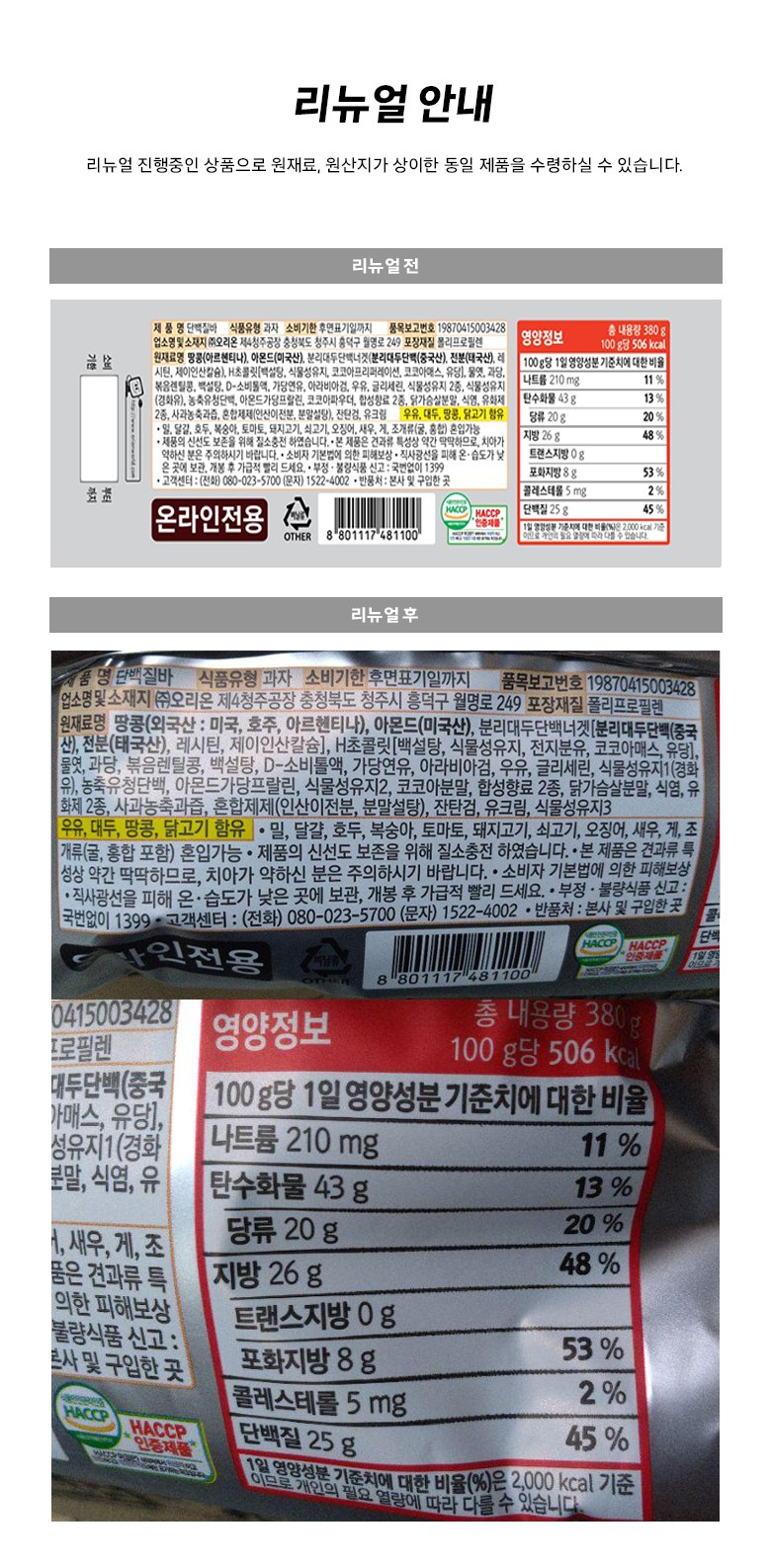 | 포장단위별 내용물의 용량(중량), 수량 | 380g x 2개,1개 | 원재료명 및 함량 | 컨텐츠참조 |