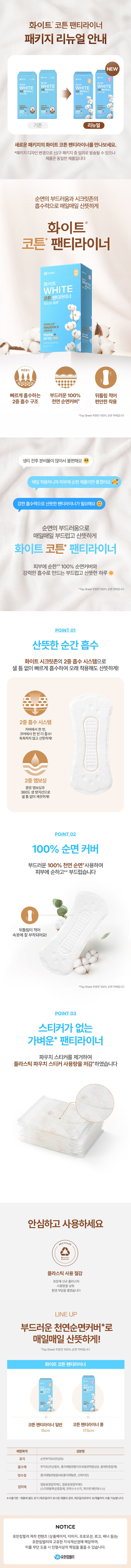 | 품명 및 모델명 | 화이트순한순면라이너일반 | 인증/허가 사항 | 의약외품 |