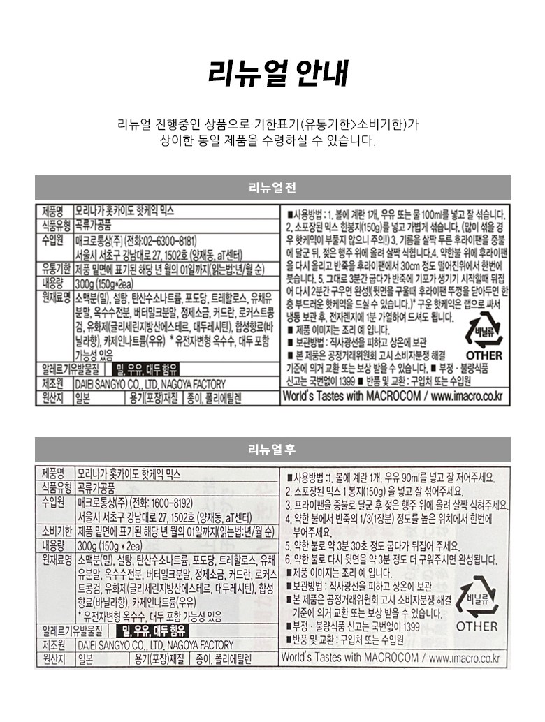 | 생산자 및 소재지 | 컨텐츠 참조 | 제조연월일, 소비기한 또는 품질유지기한 | 업데이트 예정 |