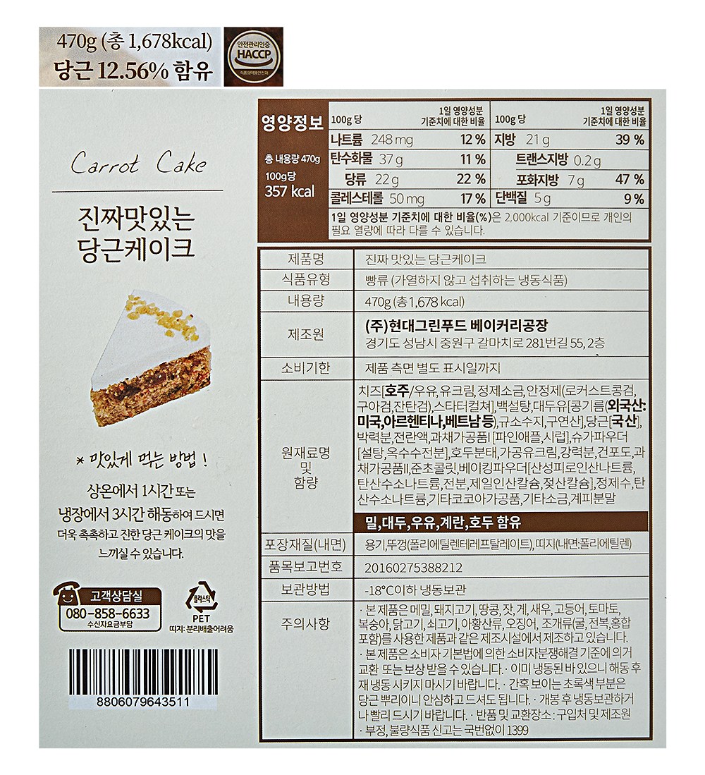 TIP! 상온에서 1시간 해동하시거나, 냉장실에 약 3시간 해동해 드시면 부드럽고 진한 치즈케이크의 맛을 느낄 수 있습니다.