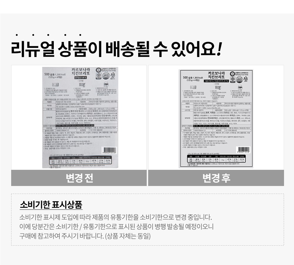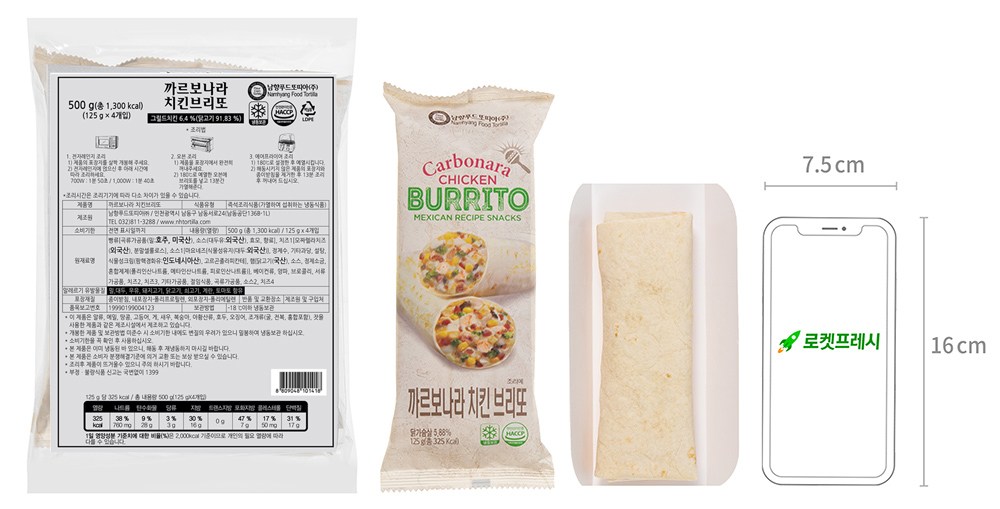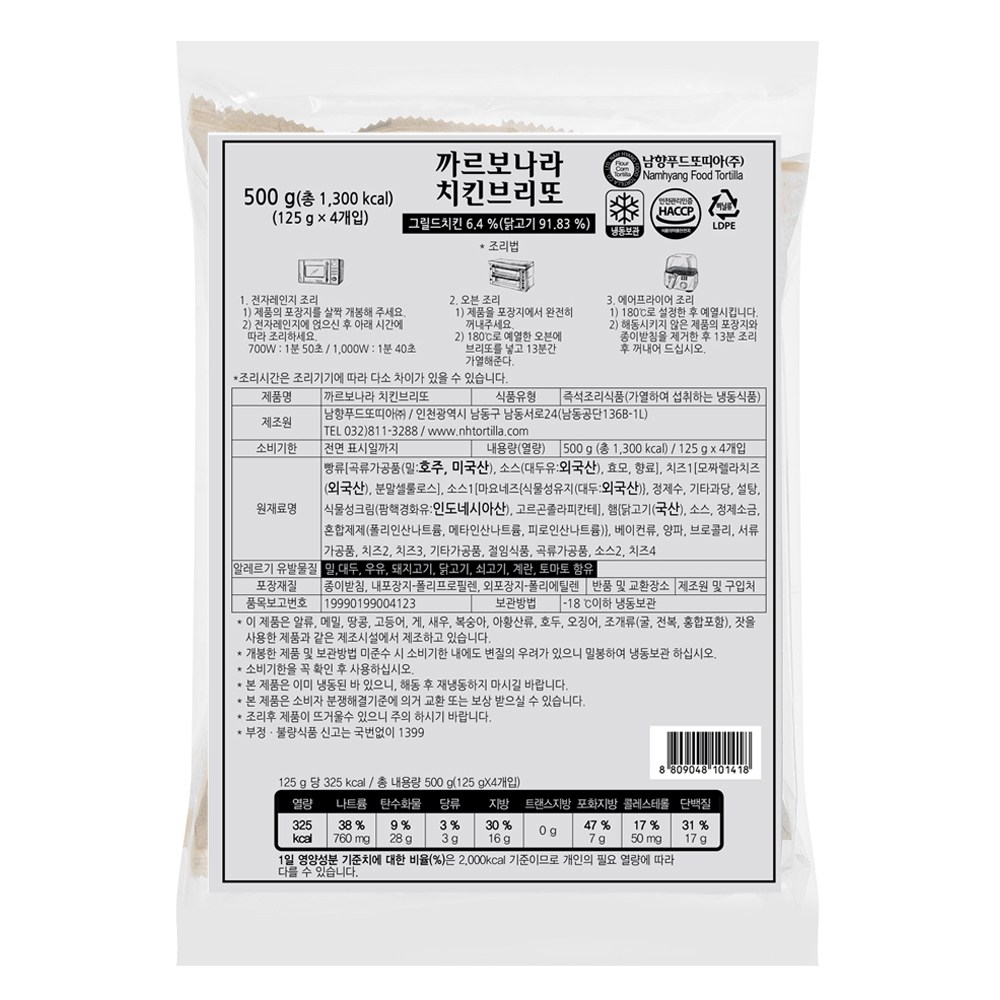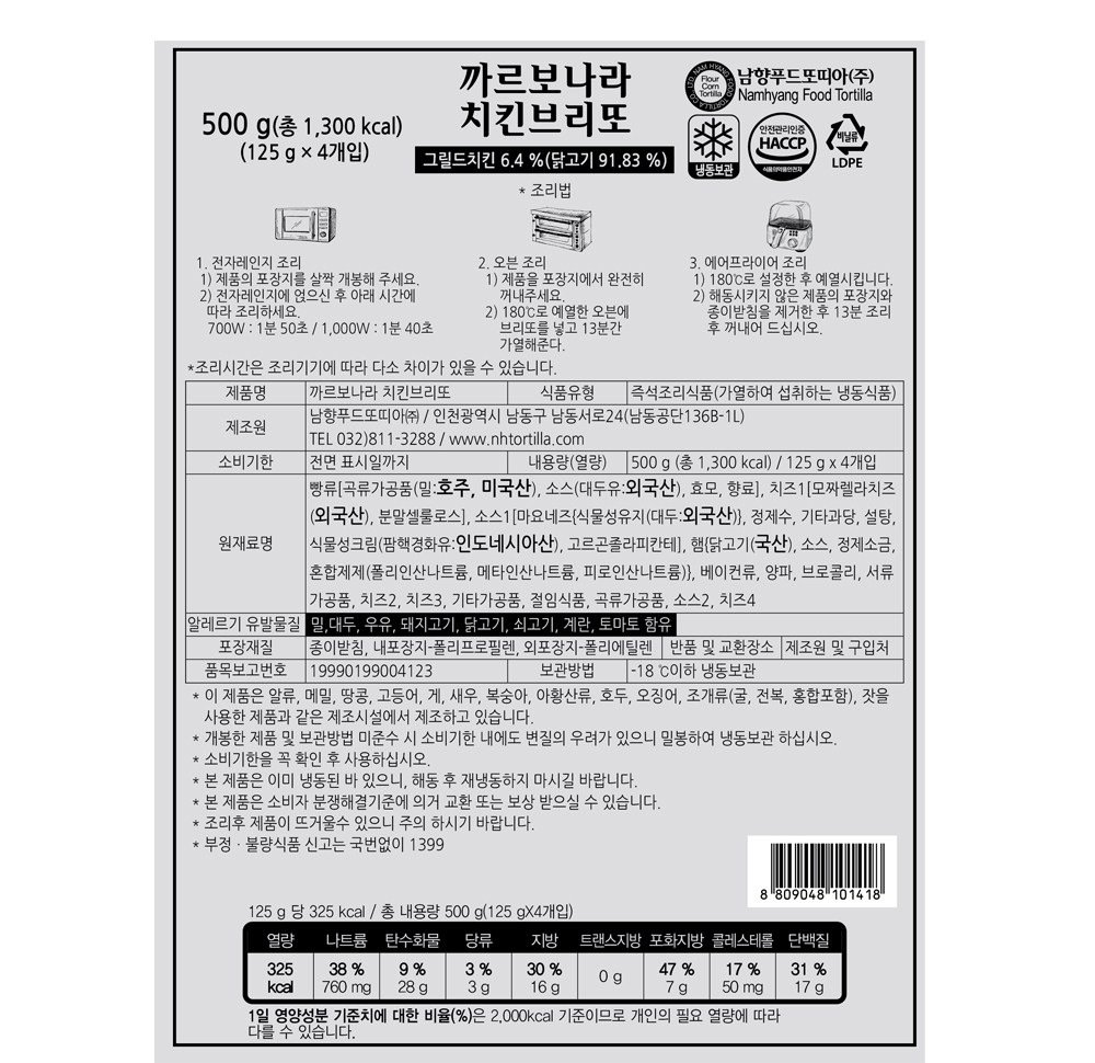 | 제품명 | 까르보나라치킨브리또 | 식품의 유형 | 컨텐츠 참조 |