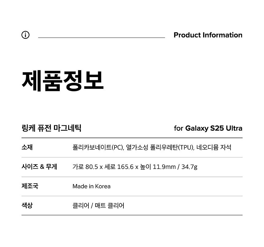 | 품명 및 모델명 | 링케 갤럭시S25 울트라 퓨전 맥세이프 마그네틱 케이스 클리어 | 인증/허가 사항 | 해당없음 |