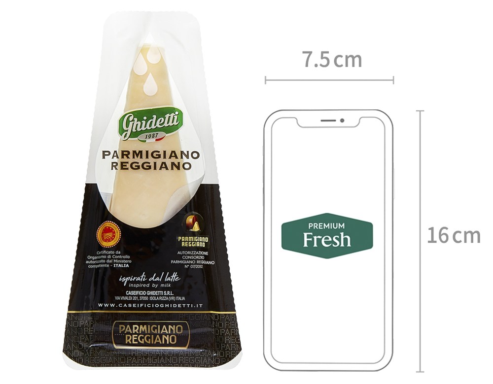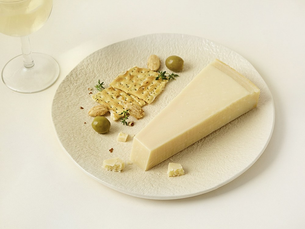 이탈리아 베로나 지역에서 80년이 넘는 시간 동안 전통과 장인의 맛을 이어온 기데티가 선보이는 파르미지아노 레지아노입니다. 파르마와 레지오 에밀리아 지역에서 전통적인 방식으로 제조하고 18개월 이상의 긴 숙성 과정을 거쳐야만 붙는 이름이죠. 공장 근처 농장에서 매일 신선한 우유를 공급받아 응축된 깊은 풍미를 완성합니다. '숙성 치즈의 왕'이라 불릴 만큼 감칠맛이 깊고 풍부하며, 특히 숙성 과정에서 생기는 결정체 덕분에 사각거리는 독특한 식감을 느낄 수 있답니다.