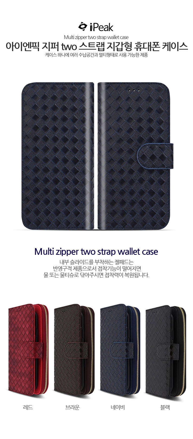 | 품명 및 모델명 | 아이엔픽 지퍼 two 스트랩 지갑형 다이어리 휴대폰 케이스 | 인증/허가 사항 | 해당없음 |