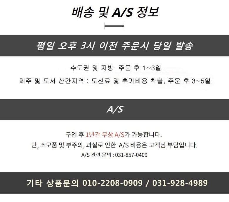 - ㆍ모니터 해상도의 차이로 인해 색상이나 이미지가 실제와 달라, 고객이 단순 변심으로 교환/반품을 무료로 요청하는 경우