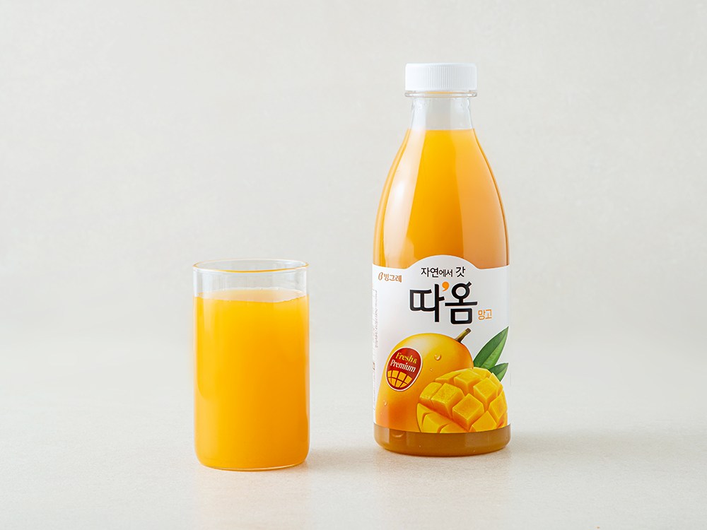 빙그레의 오랜 노하우와 까다로운 기준으로 엄선한 원료로 완성한 따옴 망고 주스예요. 망고 농축 퓨레, 망고 농축액으로 진한 달콤함을 완성했죠. 입안 가득 퍼지는 향긋한 풍미가 기분까지 상쾌하게 밝혀준답니다. 하루 한 잔, 간편하게 마시는 것만으로도 한결 산뜻한 하루가 시작될 거예요.