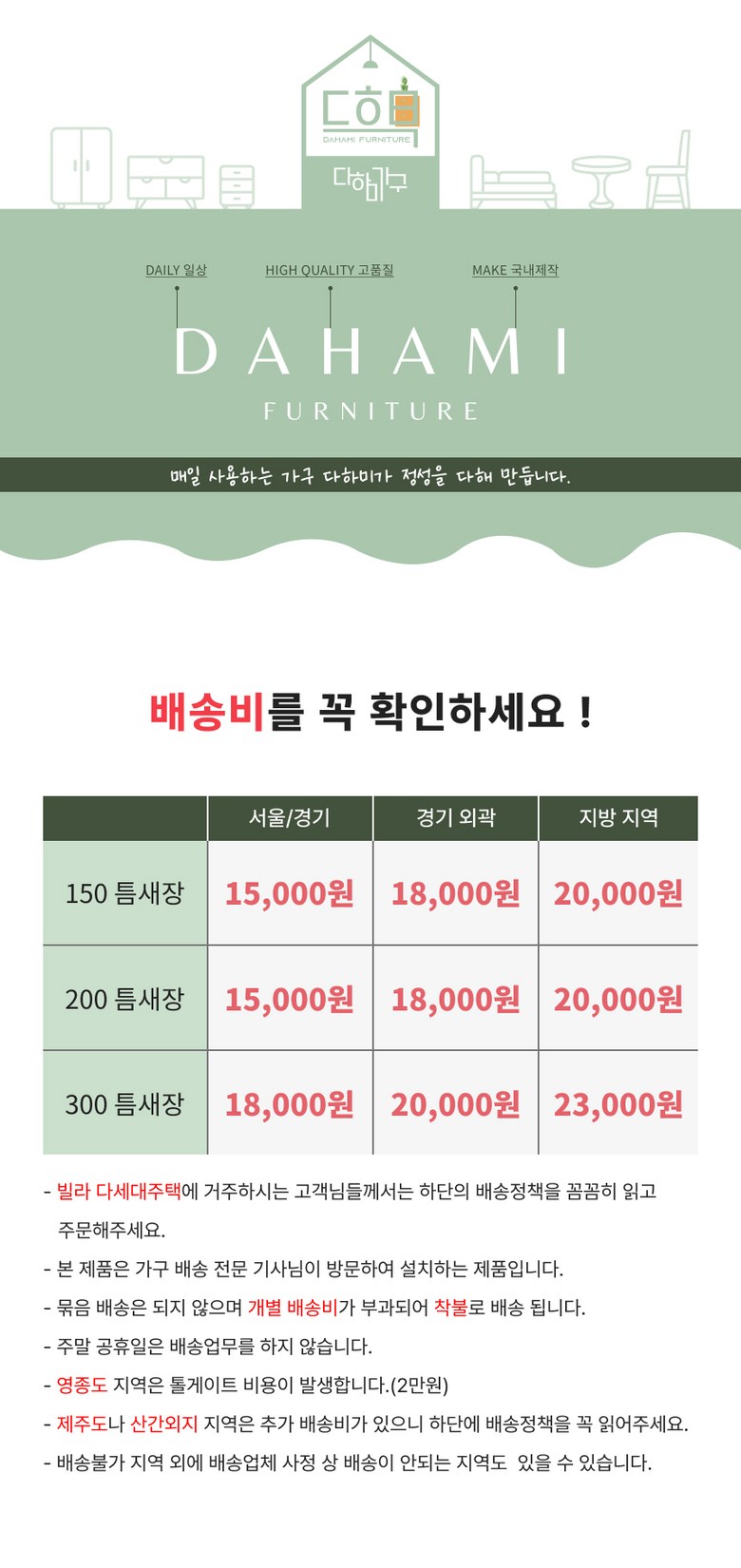 | 주요 소재 | 주요 소재:LPM, 이동식바퀴, 가드링 외 | 제조자(수입자) | 제조자:다하미가구 / 수입자:내용없음 |