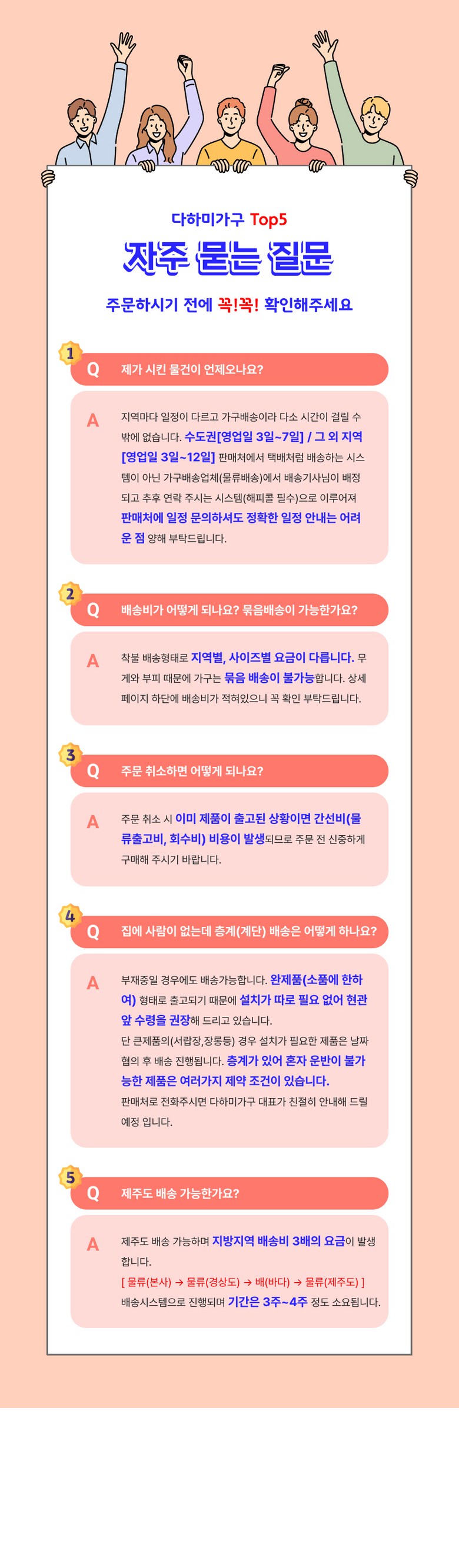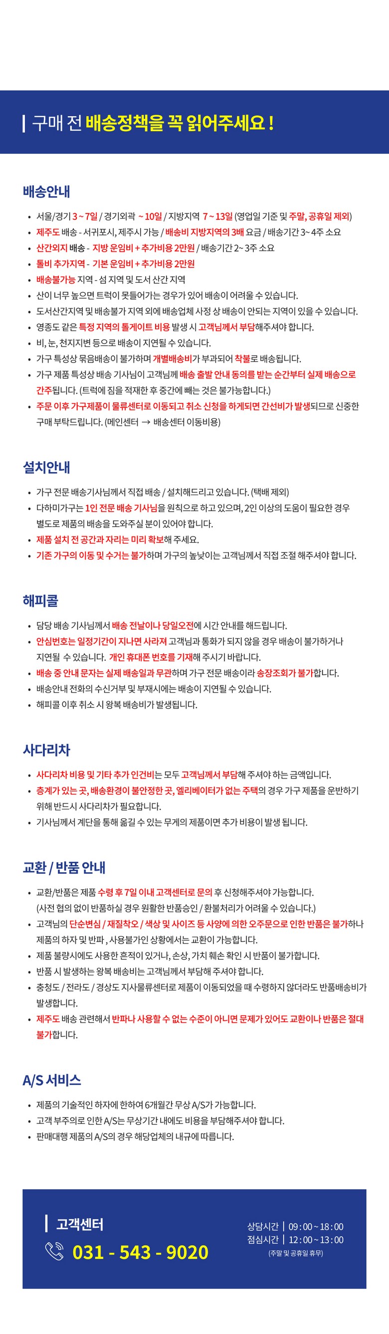 - ㆍ모니터 해상도의 차이로 인해 색상이나 이미지가 실제와 달라, 고객이 단순 변심으로 교환/반품을 무료로 요청하는 경우