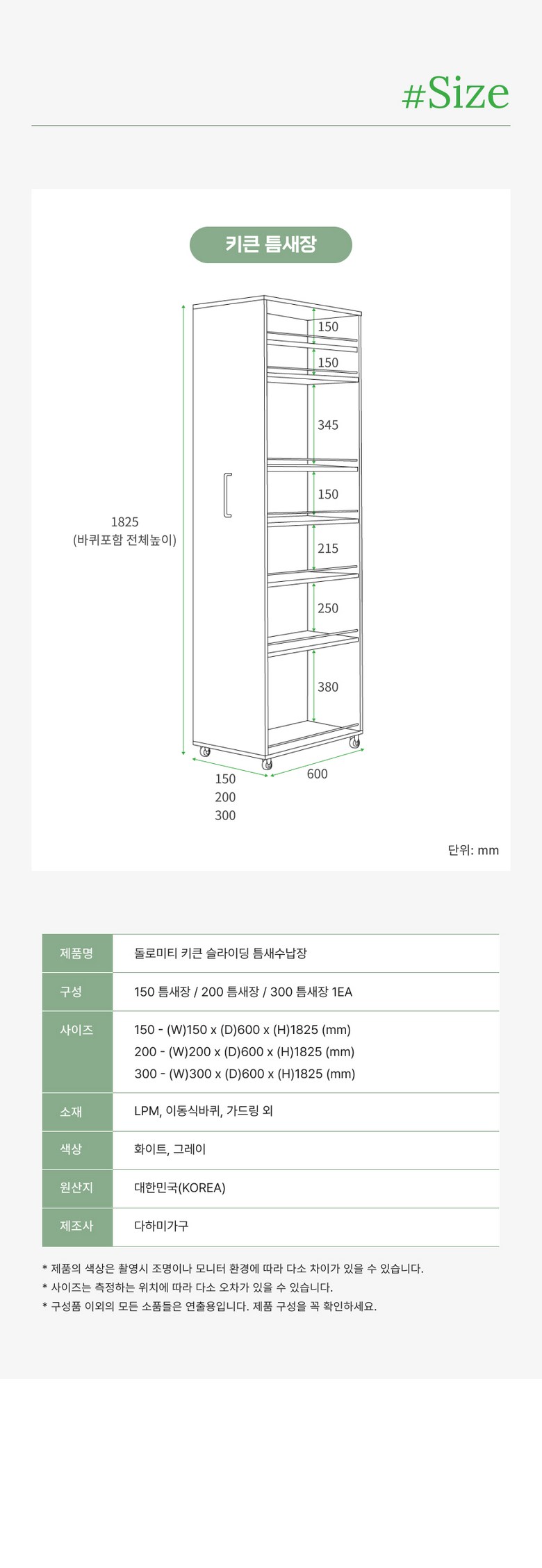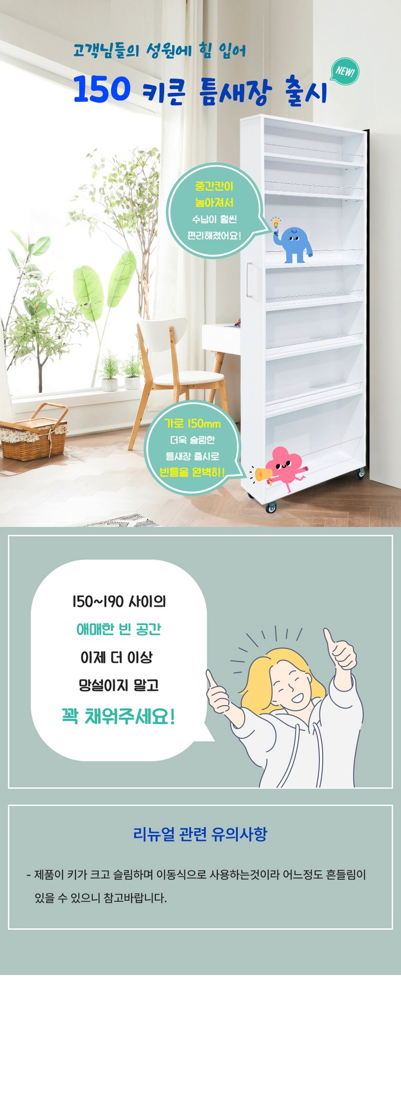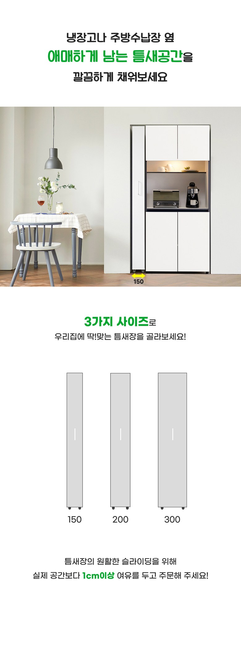 | 색상 | 색상:화이트,그레이 | 구성품 | 구성품:150 틈새장 / 200 틈새장 / 300 틈새장 1EA |