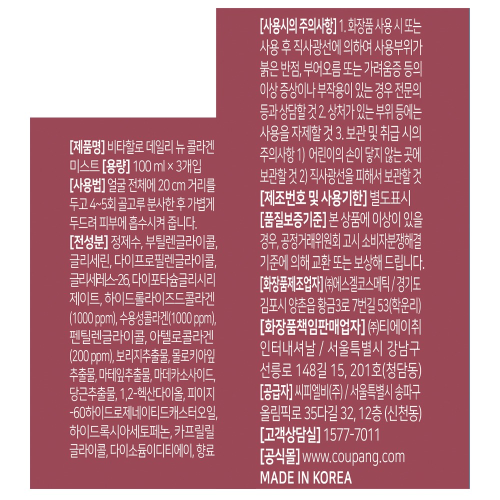| 용량(중량) | 100ml*3 | 제품 주요 사양 | 모든 피부용 |