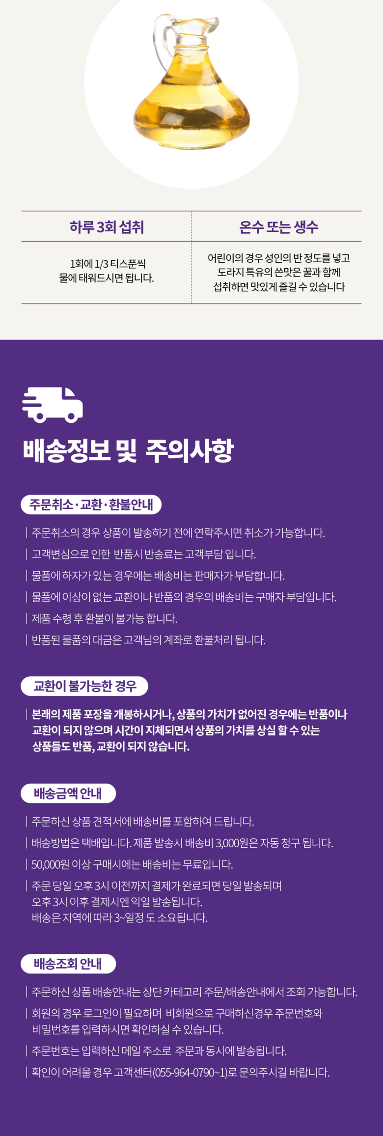 | 배송방법 | 순차배송 | 배송비 | 3,000원 - 50,000원 이상 구매 시 무료배송 · 도서산간 추가 배송비 - 제주 지역: 5,000원 - 도서산간 지역: 5,000원 |