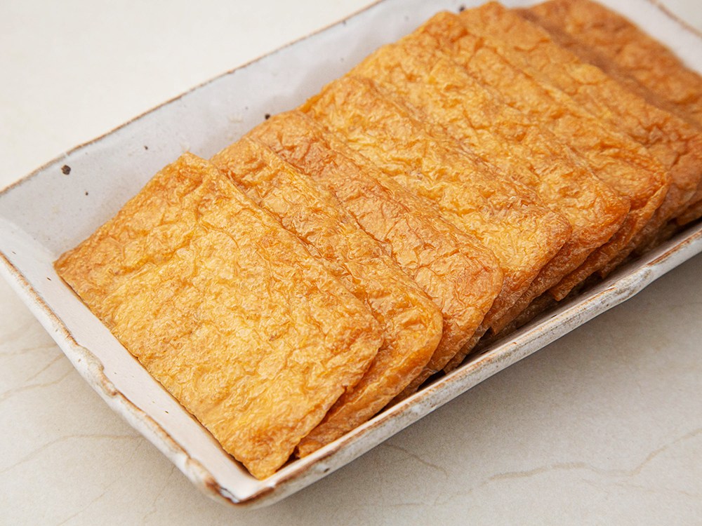 고소하고 담백한 맛이 좋은 유부. 새콤달콤한 조미액에 담긴 초밥용 유부로 만나보세요. 큼직하고 네모난 모양이라 더욱 먹음직스럽죠. 특유의 포슬포슬하면서도 부드러운 식감이 일품이랍니다. 다양한 재료를 쏙 더해 나만의 유부초밥을 완성해 보세요.