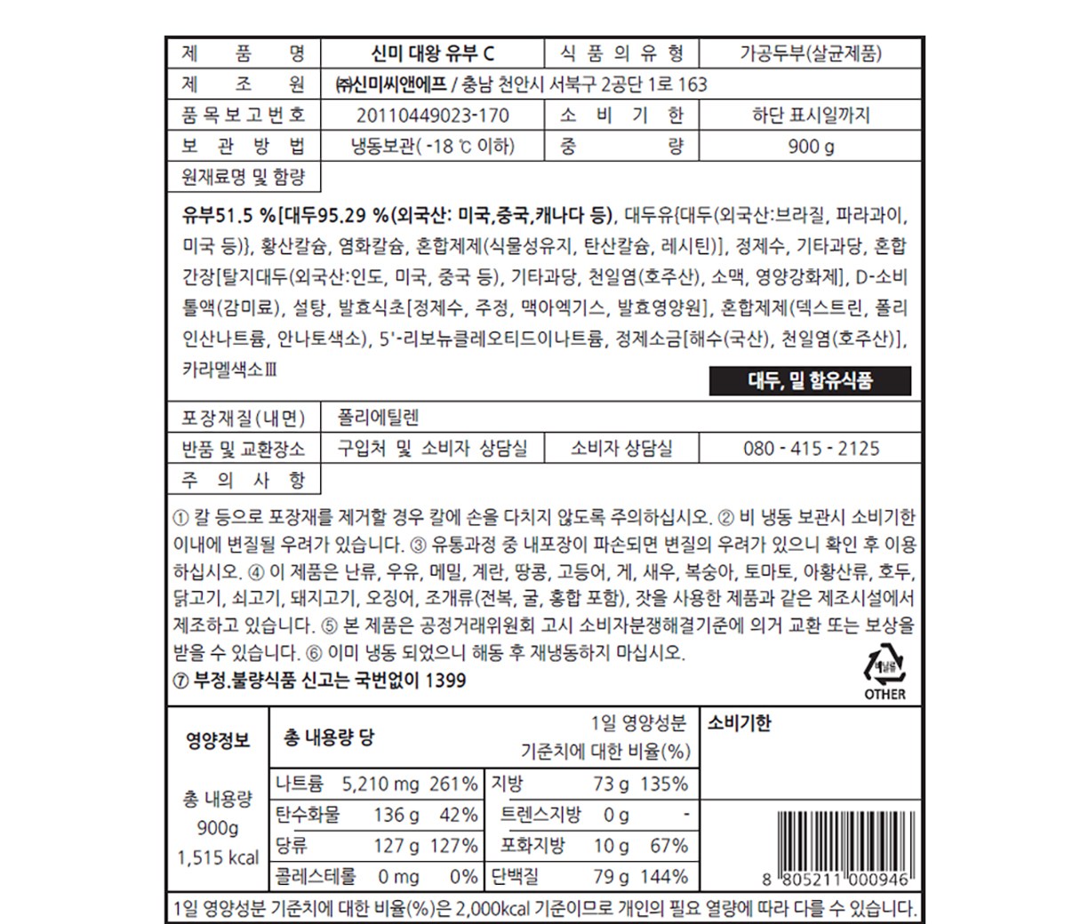 | 포장단위별 내용물의 용량(중량), 수량 | 900g x 3개 | 원재료명 및 함량 | 컨텐츠 참조 |