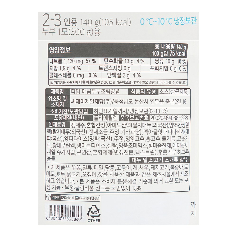 | 포장단위별 내용물의 용량(중량), 수량 | 140g x 6개 | 원재료명 및 함량 | 컨텐츠참조 |