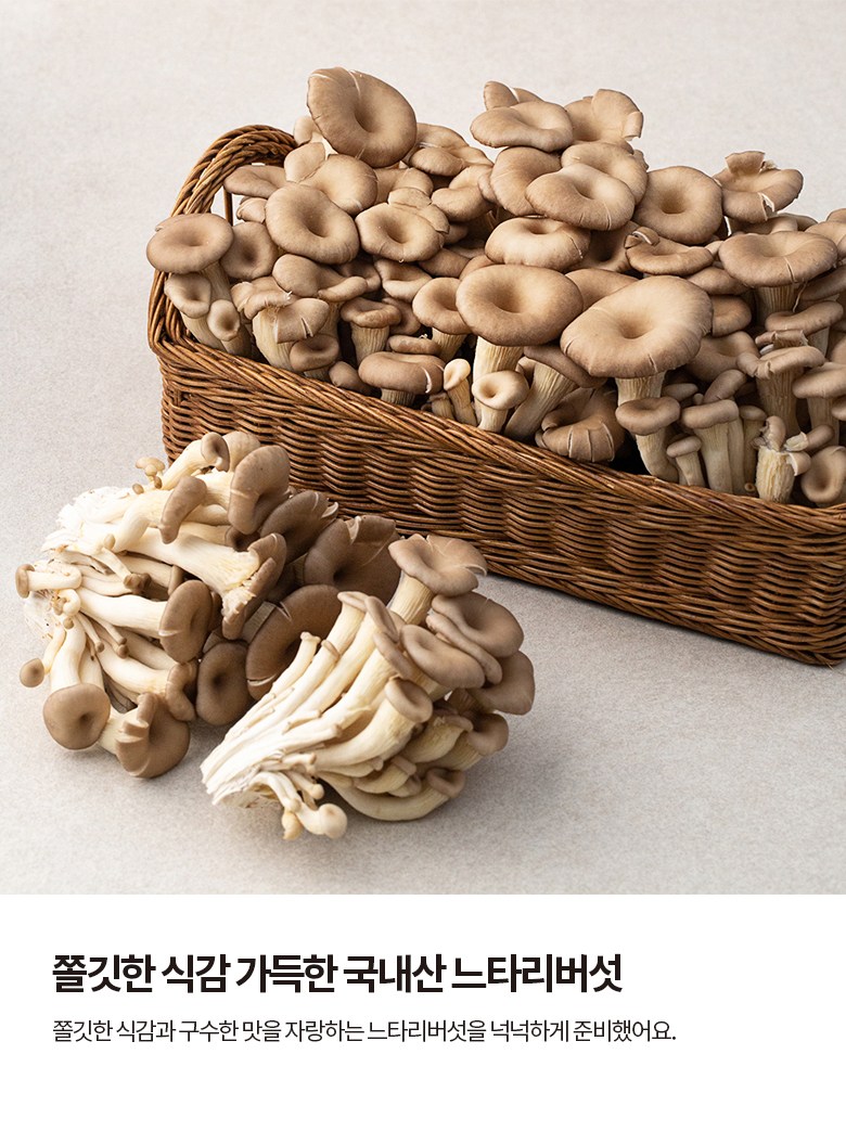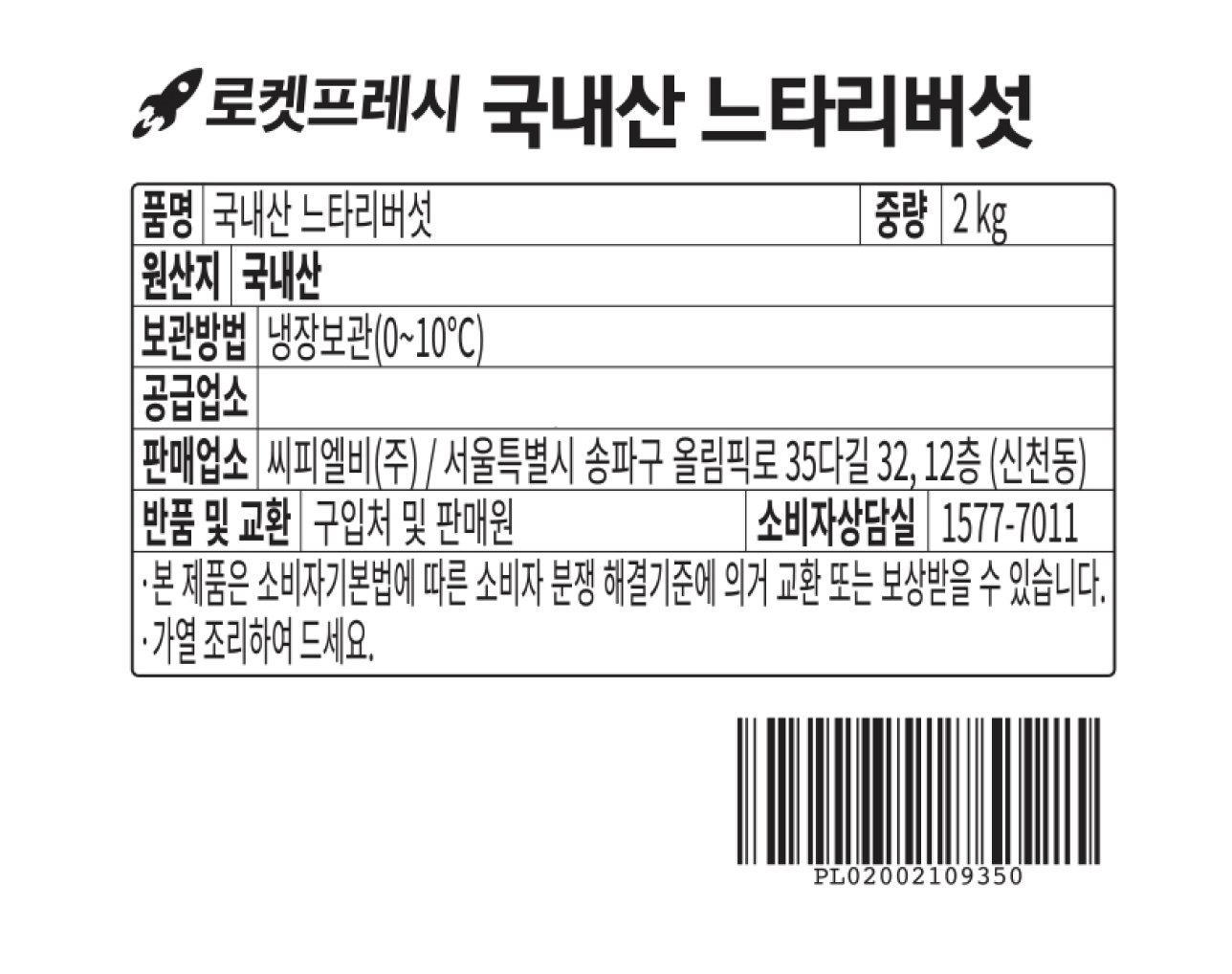 | 품목 또는 명칭 | 국내산 느타리버섯 | 포장단위별 내용물의 용량(중량),수량,크기 | 2KGx2개 |